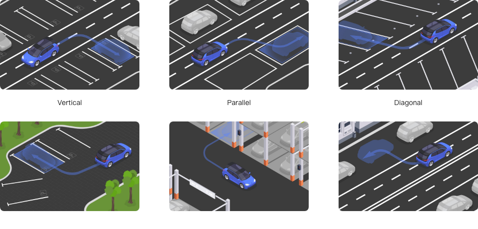 Using the existing AVM cameras, ArcSoft APA perception algorithms detect precise object locations and free parking spaces. Based on the perception results, ArcSoft APA solutions provide stable planning and control capabilities that can handle complex parking scenarios such as dead-end roads and multi-layer mechanical parking spaces, with robust performance. ArcSoft APA solutions adapt to various environmental elements, including parking spaces, corner parking spots, adjacent vehicles, cones, sidewalks, barriers, walls, pillars, curbs, and more.
